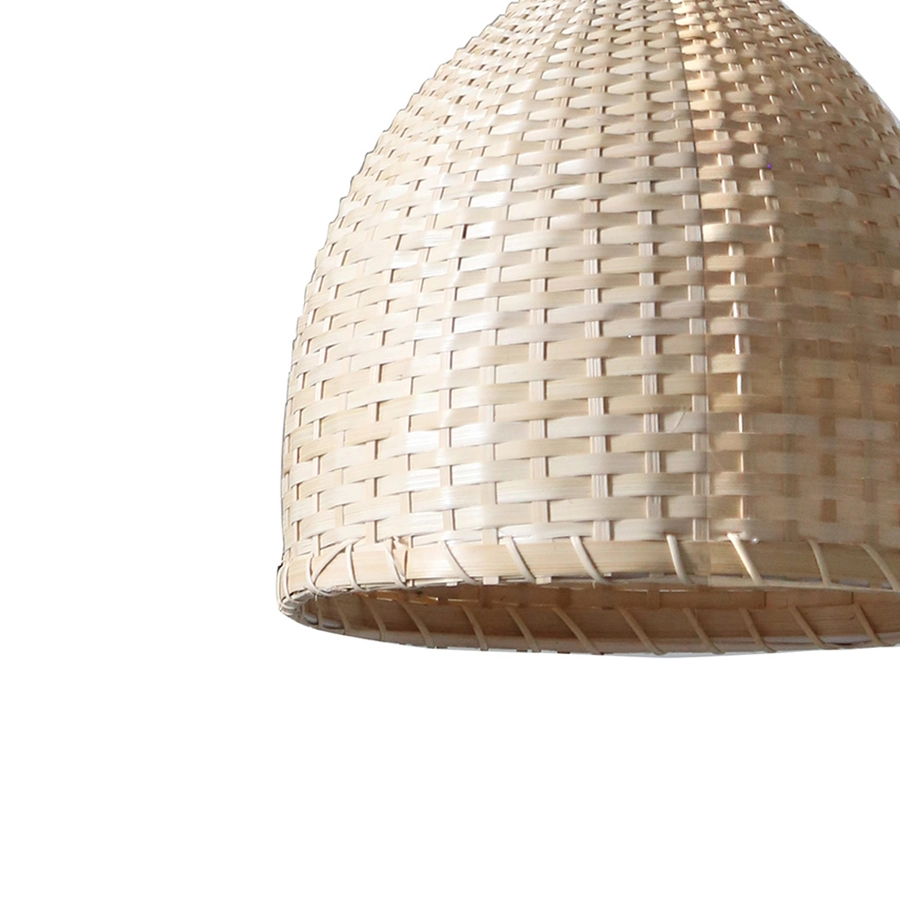 Give a bohemian-inspired decorative touch to the room with this white metal pendant light featuring a bamboo shade. A 60-watt, A19 light bulb is required (sold separately).