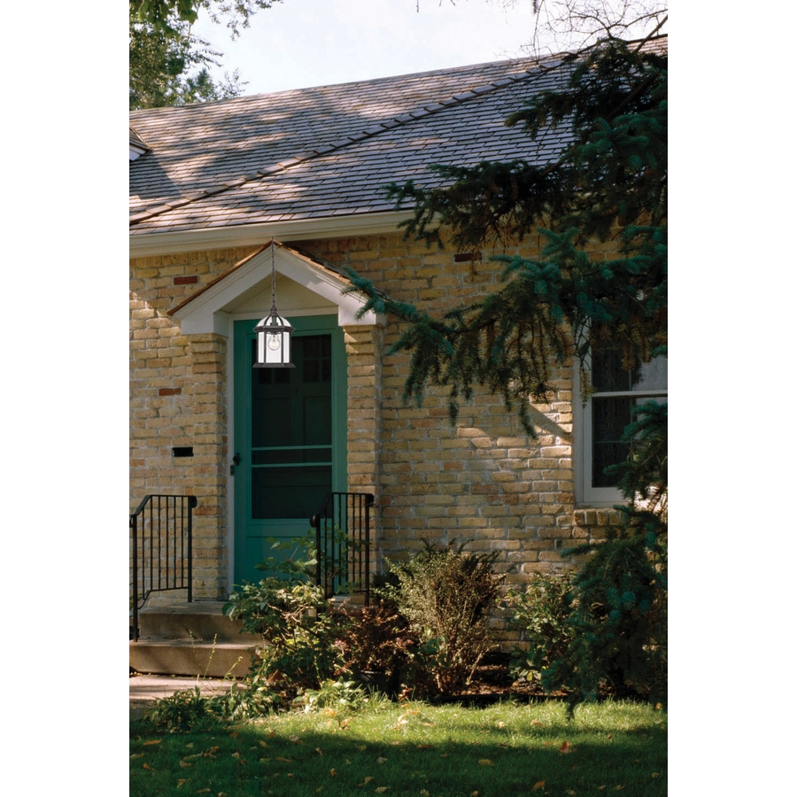 This Uberhaus suspended lantern will provide security and lighting to your walkway or porch. Its elegant mat black structure with rusty effect and its clear-glass shade make this suspended light is the perfect addition to your outdoor décor. A bright 100-watt E26 lightbulb (not included) is required. One-year warranty.