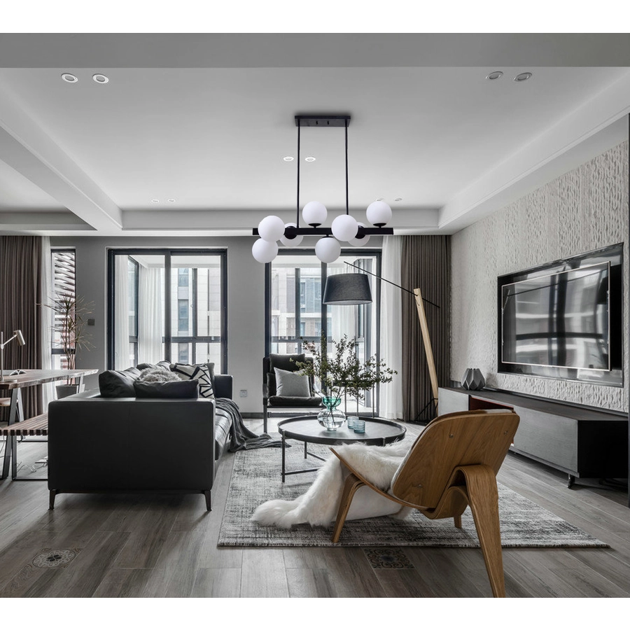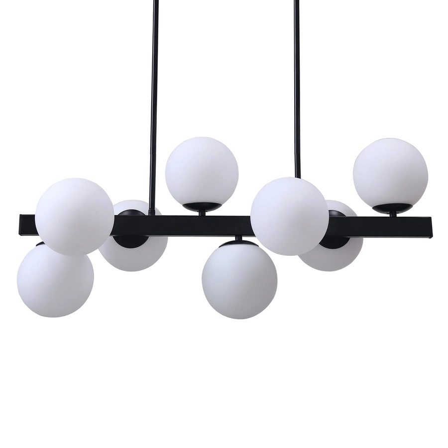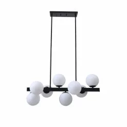 This pendant light from Project Source has a matte black metal structure completed by 8 opal glass spherical shades. It requires eight G9 40-watt light bulbs which are sold separately. This product comes with a limited 1-year warranty.