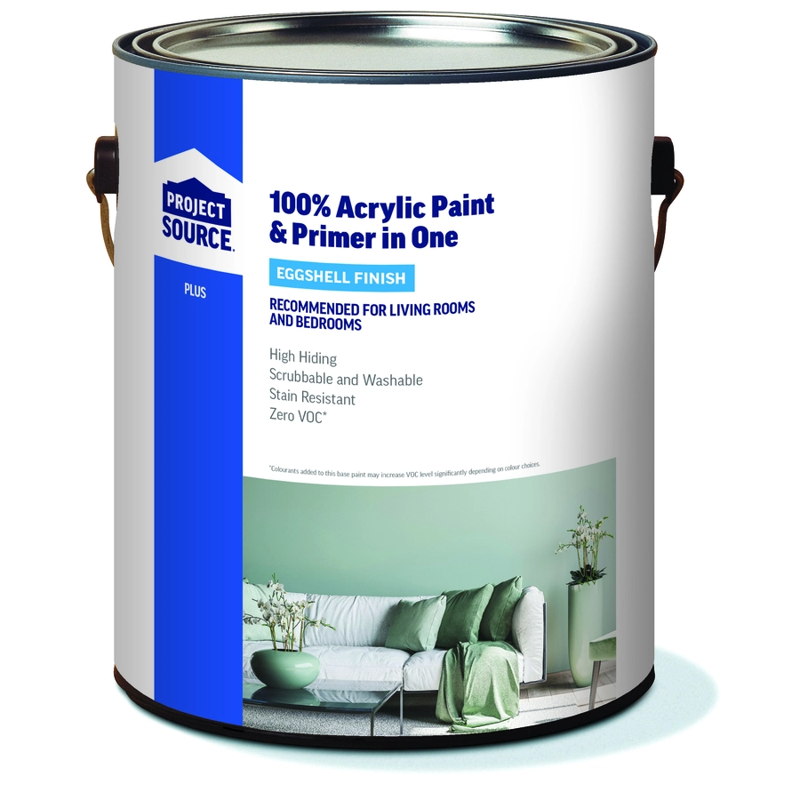Project Source Plus Interior Paint And Primer Eggshell White, 3.78L