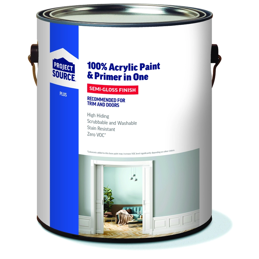 Project Source Plus Interior Paint And Primer Semi-Gloss Medium Base, 3.78L